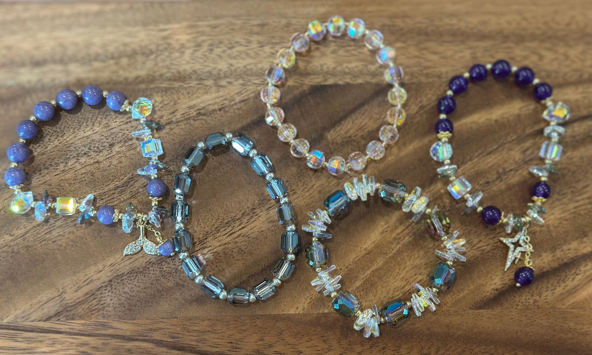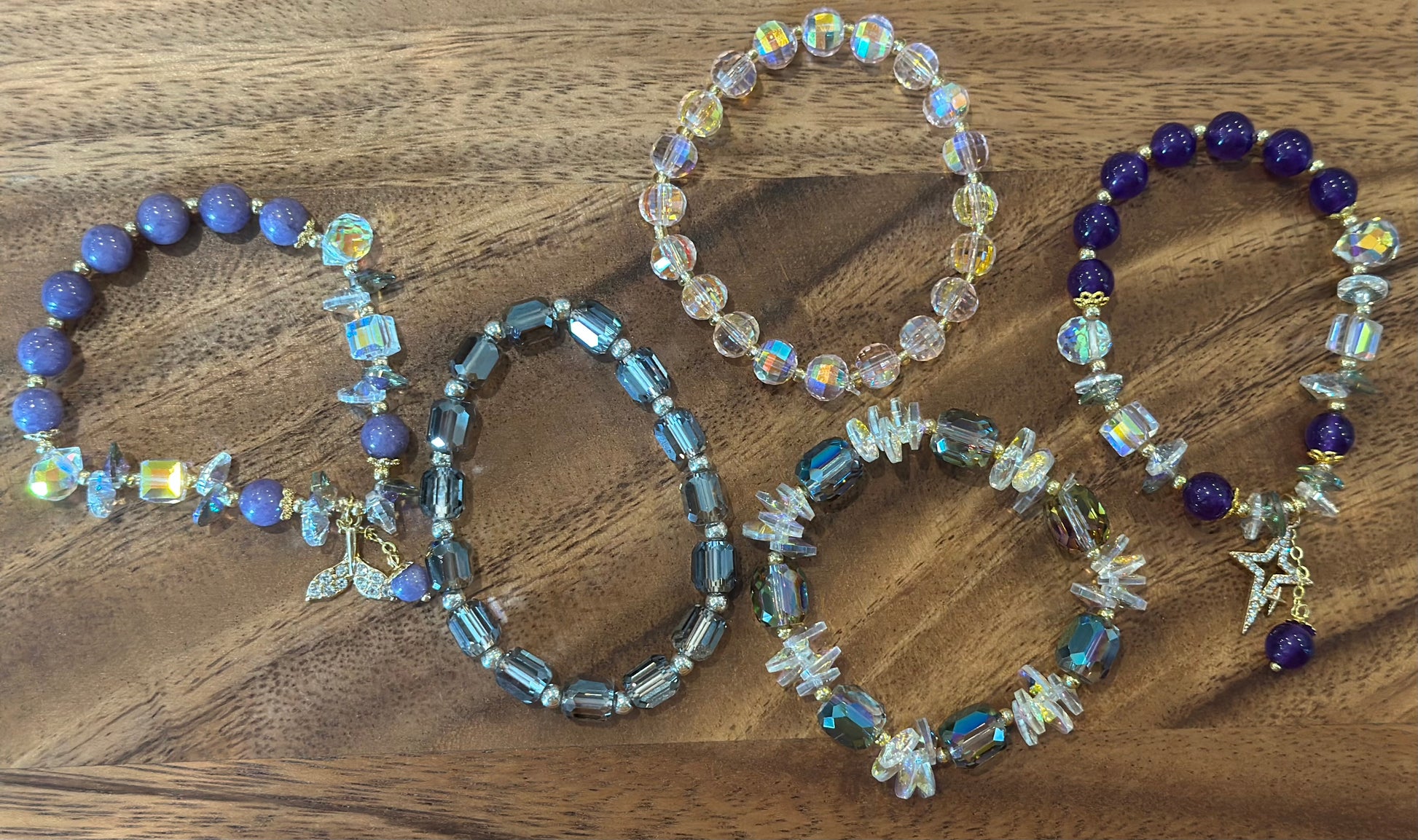 5 Luxe Glass Crystal Bead Bracelets (Handmade)